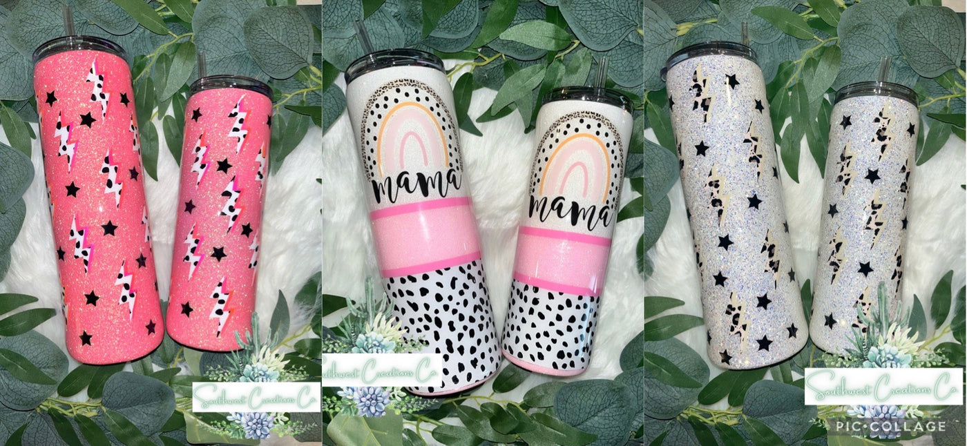 Born and raised in Albuquerque, New Mexico until 2010 when my family moved here to Missouri and I have been here ever since. I am married to my wonderful husband Kody who is also a small business owner! We have been married since 2019 and just had our first baby Sutton in March of 2022. I have always had a love for crafting and making things. Thanks for coming along on this journey with me and welcome to the cup addiction!!!!